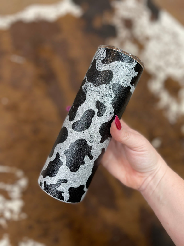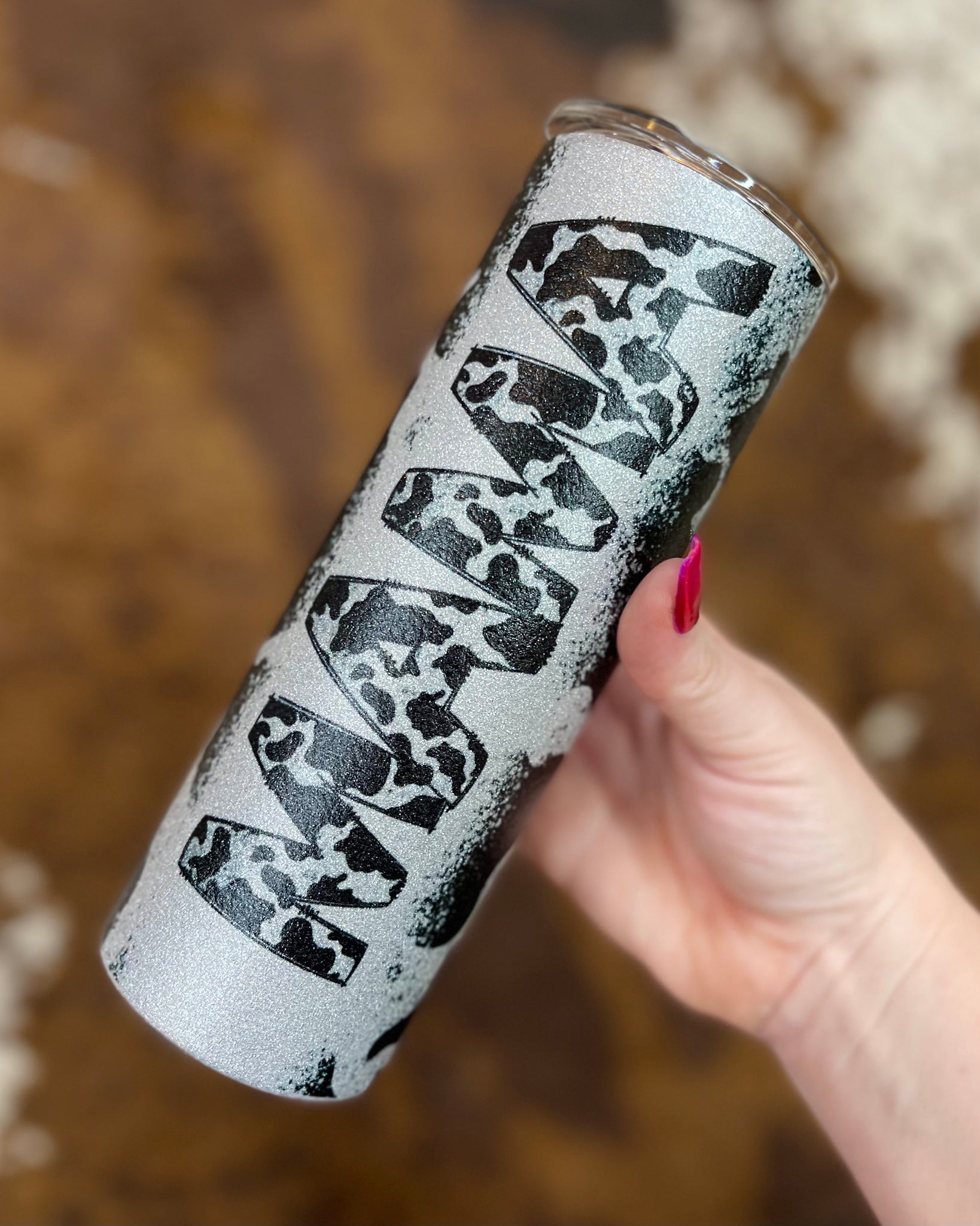 Mama Cow Print Glitter Tumbler
